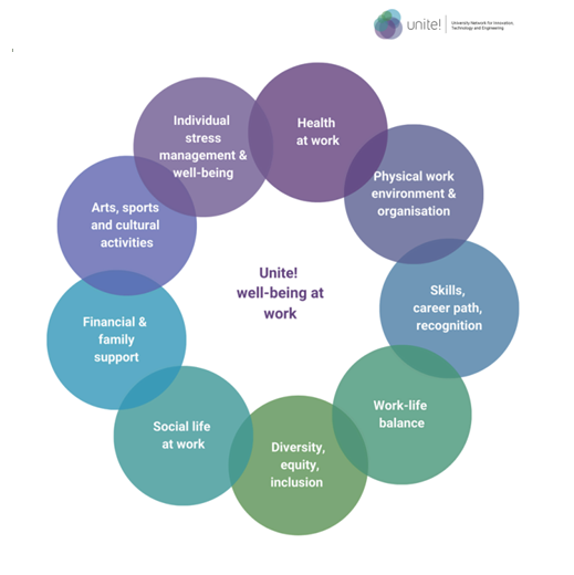 As faculty and staff, our well-being at work is of the highest concern to Unite! The concept may vary depending on our university, the country we work in, and the local context. As a result, a wide range of actions aimed at improving the quality of work life exists across our alliance.